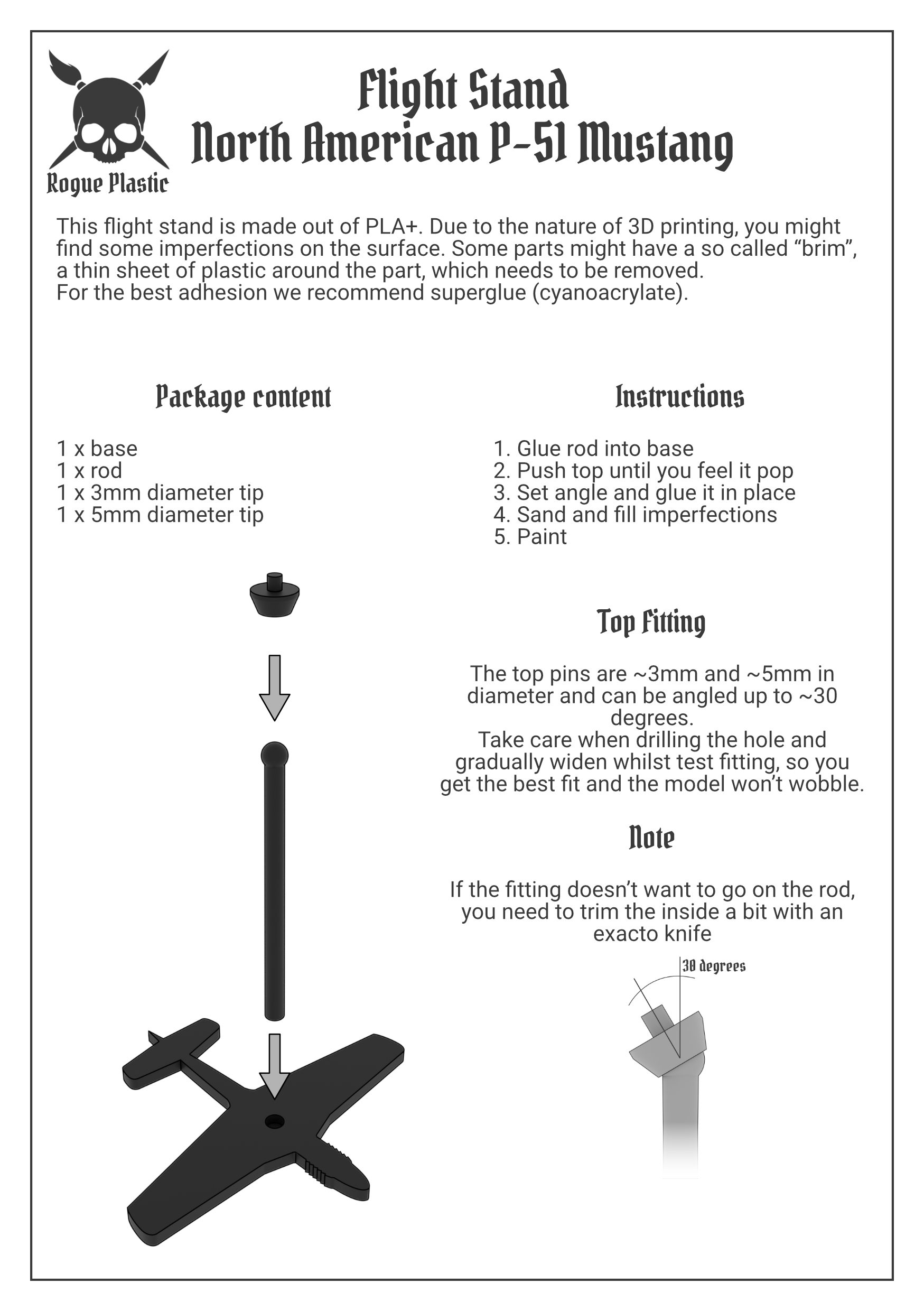 Scale Model Airplane Flight Stand With Silhouette Base - North American P-51 Mustang