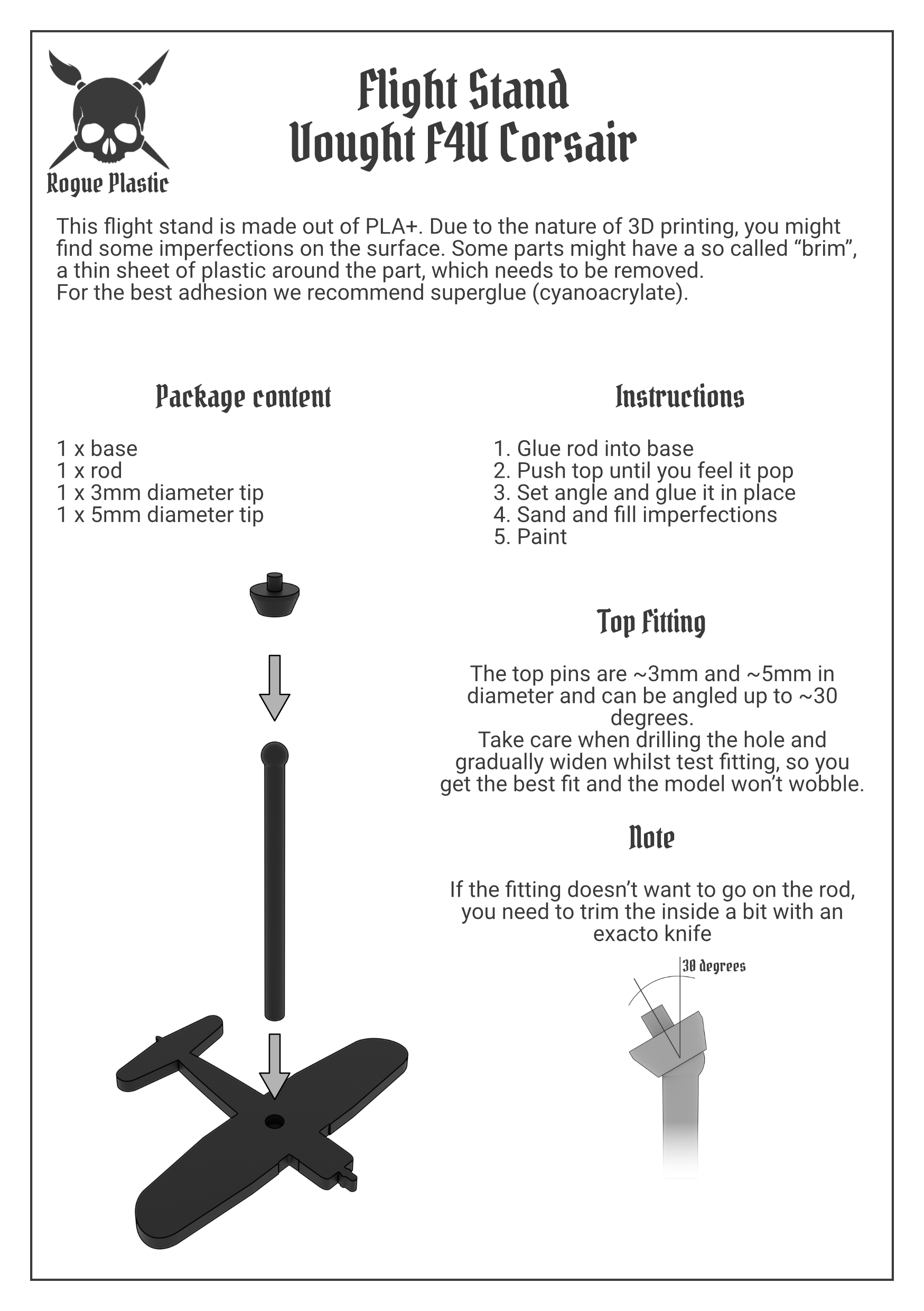 Scale Model Airplane Flight Stand With Silhouette Base - Vought F4U Corsair